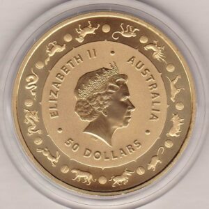 This Australia Gold half ounce coin was struck in 24 carat gold and weighs approx. 15.552 grams. The equivalent of half an ounce of 9999 fine gold.
