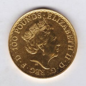 2016 Gold One Ounce Britannia coin. Queen Elizabeth II obverse. The reverse of this coin depicts Britannia, a female personification of the United Kingdom.2016 Gold One Ounce Britannia – Monkey Privy Mark