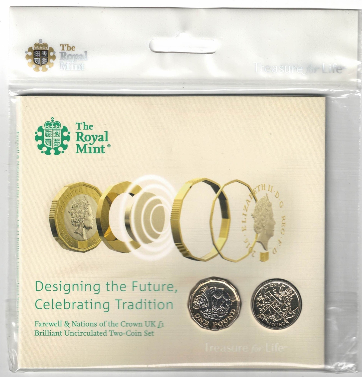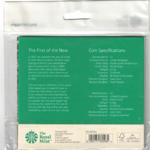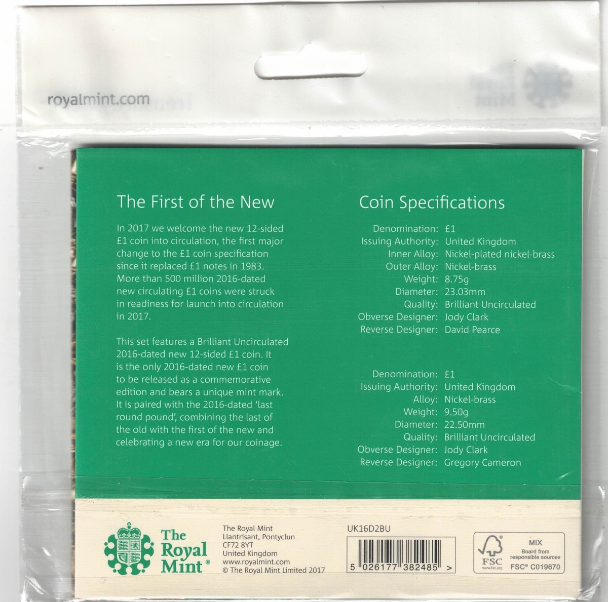 This Coin set features Two, One Pound Coins, An Old and New one. Both 2016. ‘The Last round pound’ and the new 12-sided one pound.