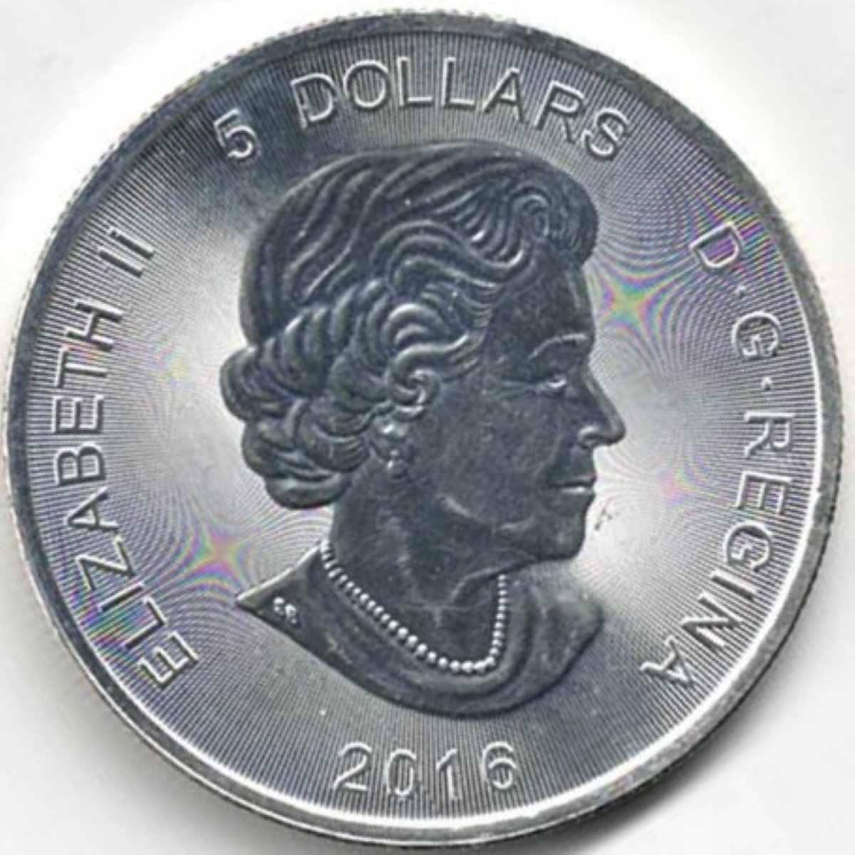 The 2016 Cougar is a coin struck in fine silver by the Canadian Mint . The obverse features Elizabeth II facing Right. The reverse features a Cougar facing left.
