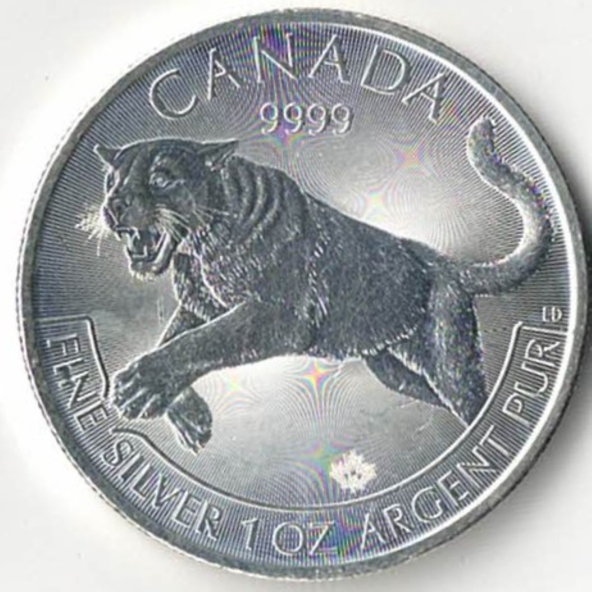 2016 Silver Canada One Ounce Cougar. Elizabeth II is on the obverse, The Cougar is on the reverse. The coin contains one ounce of 9999 fine silver.2016 Silver Canada One Ounce Cougar