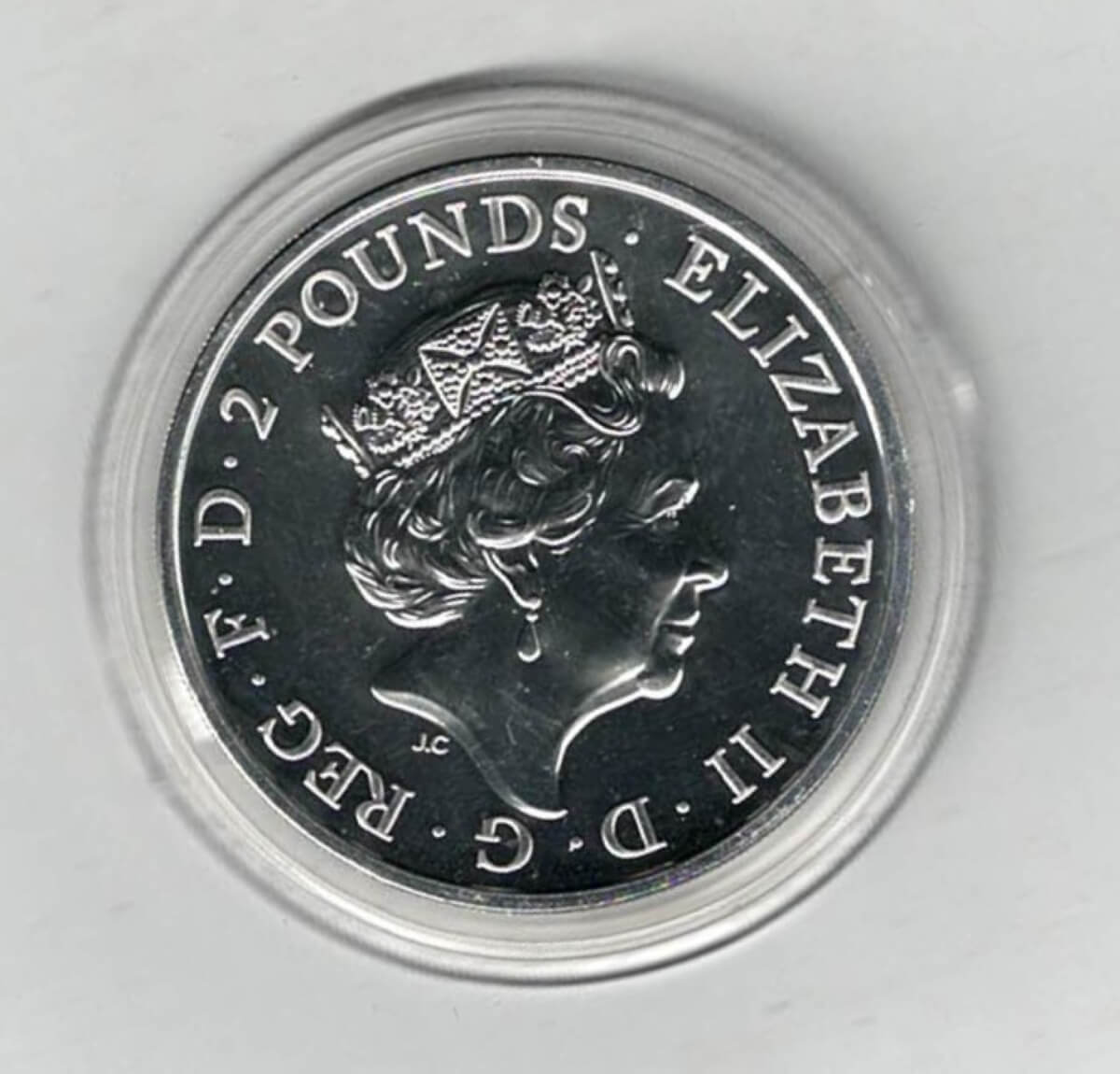 2016 Queen Elizabeth II One Ounce Silver Year Of The Monkey £2 Coin In Near Mint Condition.