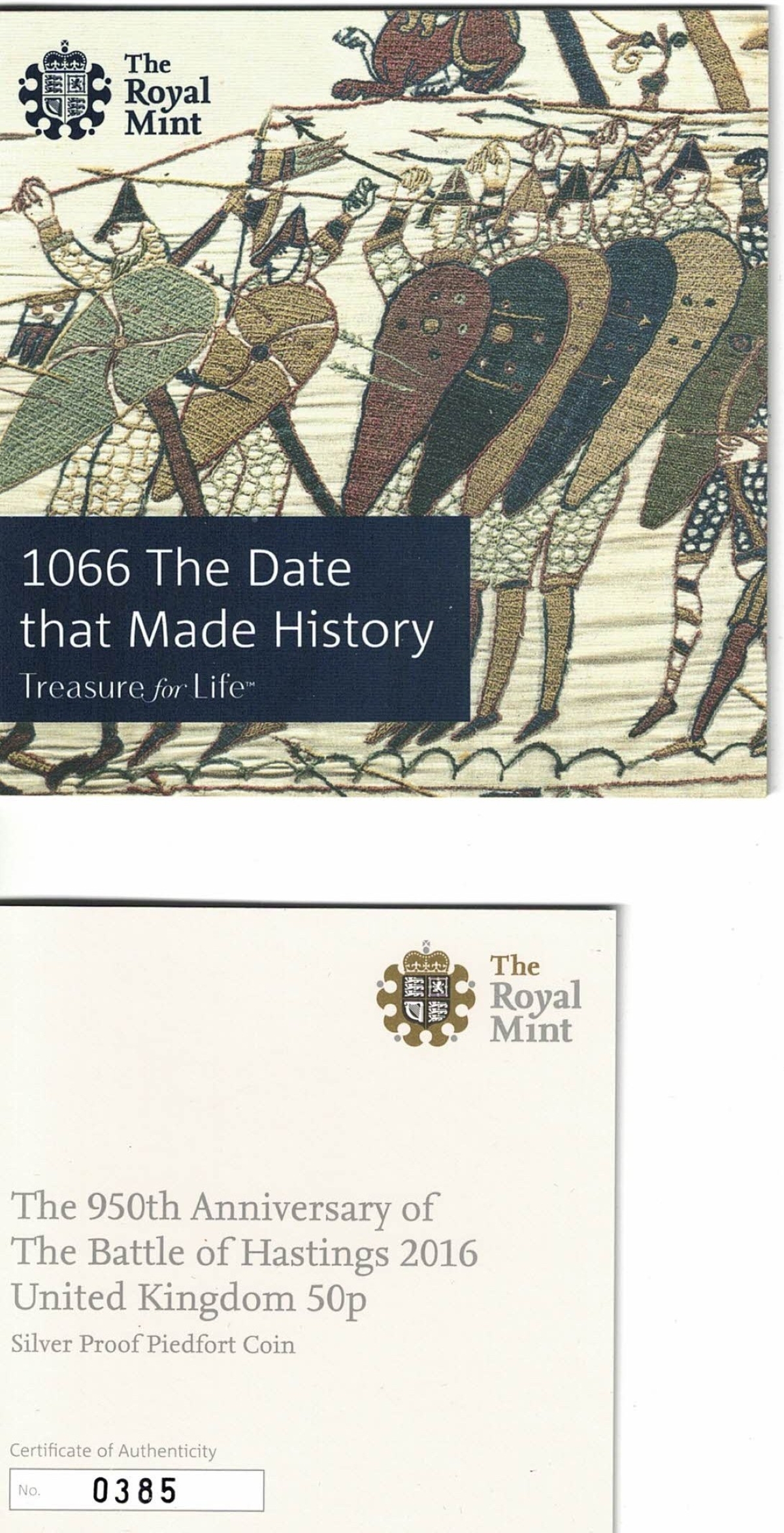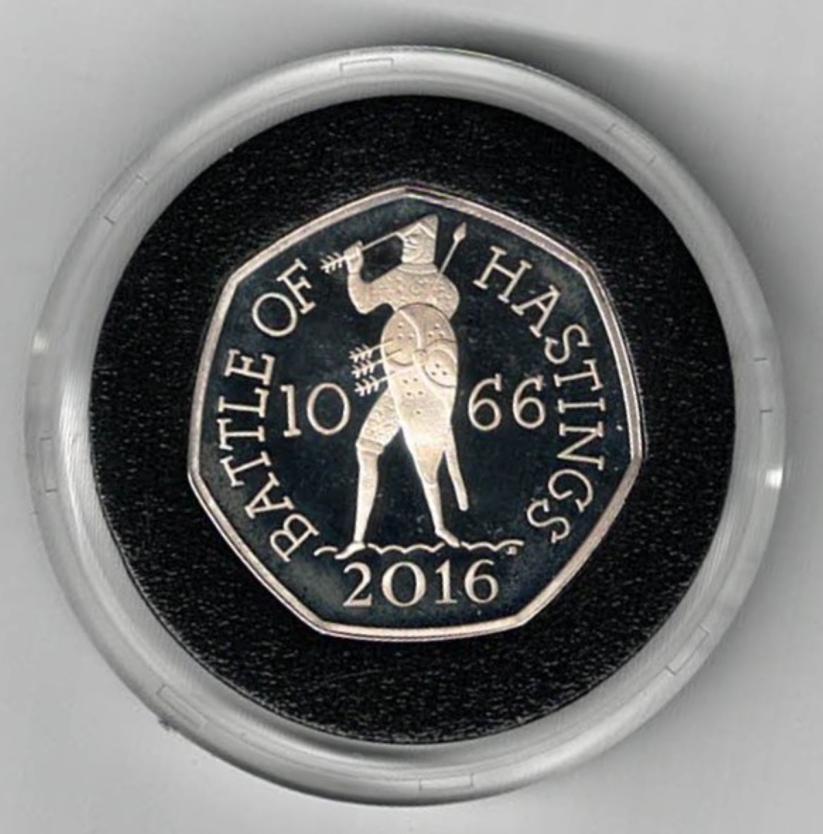 2016 Piedfort Silver Proof Fifty Pence Coin ‘The 950th Anniversary of The Battle of Hastings’ in Near Mint Condition.