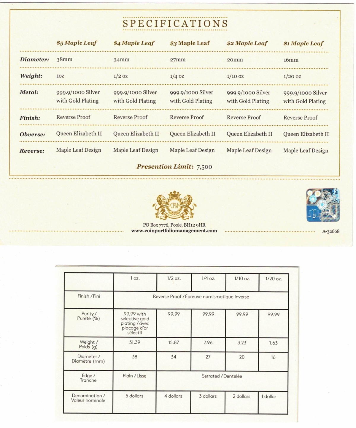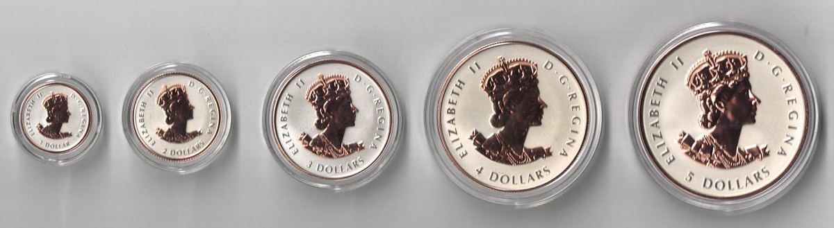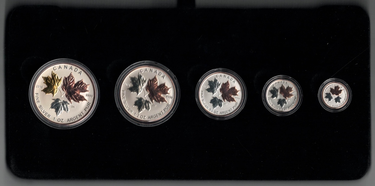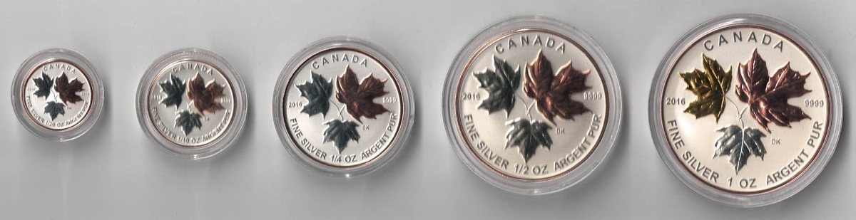 The 2016 Canadian Maple five coin set was struck in 9999 silver by the Royal Canadian Mint of Ottawa.