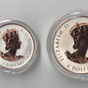 The obverse features a Gold plated 1952 effigy of her Majesty Elizabeth II. The reverse features three engraved maple leaves within a rim that surrounds the word Canada and the year 2016. The largest maple leaf is plated with pink gold.