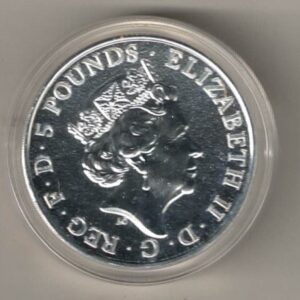 This coin was issued as part of the Queen’s Beasts series by the Royal Mint.