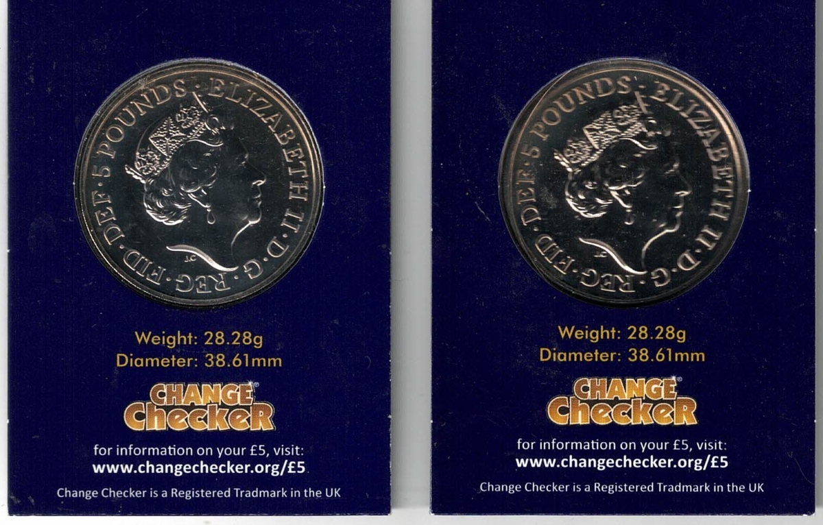 2017 & 2018 Five Pound Christmas Coins in Change Checker Packs In Mint Condition.