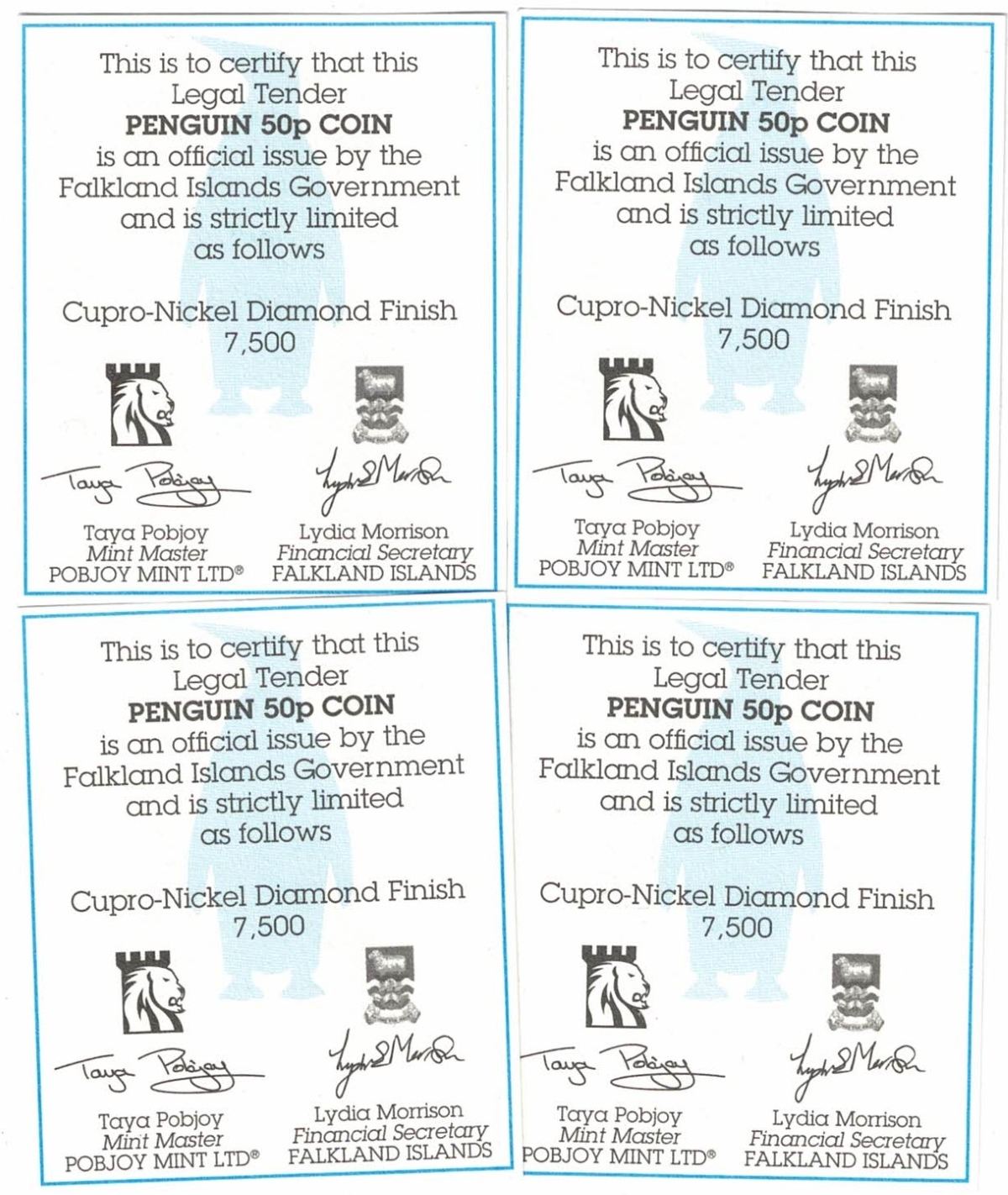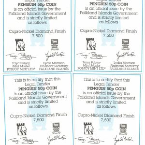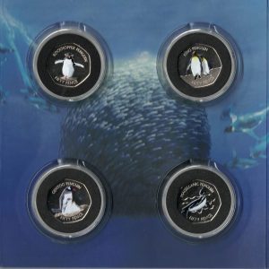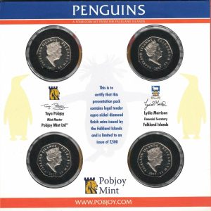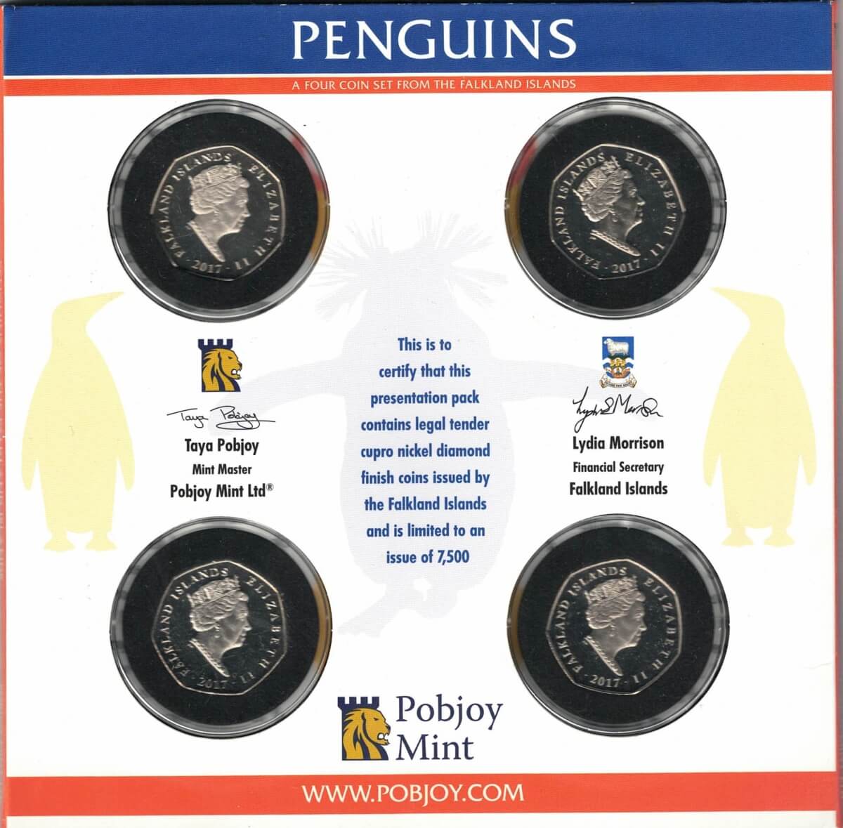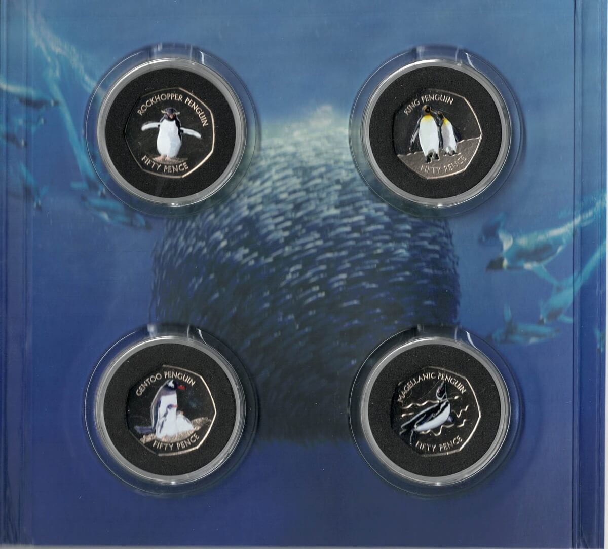 2017 Falkland Islands Penguins Fifty Pence Four Coin Set in Mint Condition.