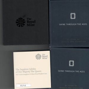 2017 Five Pounds Piedfort Silver Proof The Sapphire Jubilee Of Her Majesty The Queen Coin In Near Mint Condition.