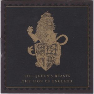 In 2017 the Roya Mint struck this gold Lion Of England design. The coin was issued as part of the Queen’s Beasts series. The obverse features Queen Elizabeth II. The reverse features a crowned Lion of England dividing date, holding the quartered shield of arms, with legend around.