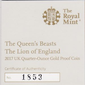 You are buying the 2017 Gold Proof Quarter Ounce Queen’s Beasts The Lion Of England Coin in the pictures.