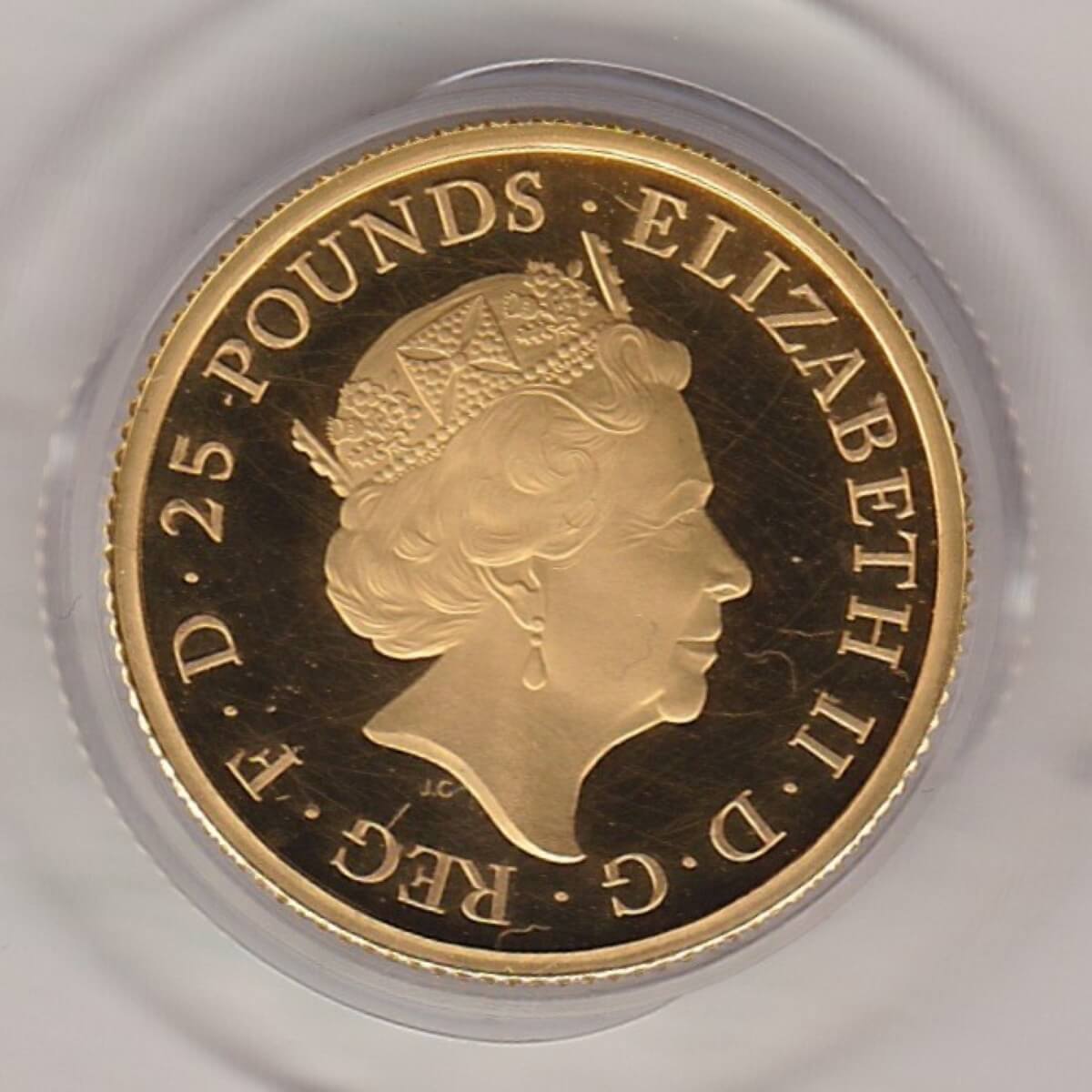The Quarter Ounce coin has the intrinsic value of £25