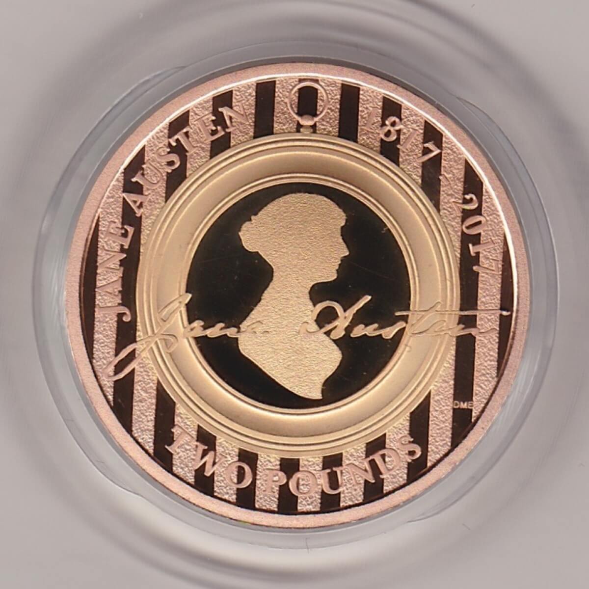 The coin was issued to commemorate the 200th anniversary of Jane Austen.