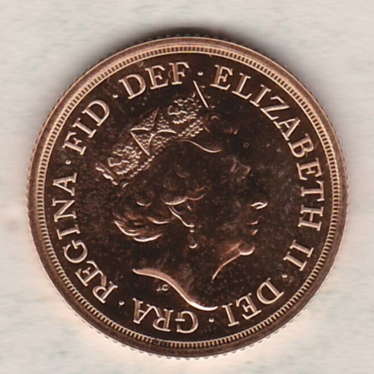 The 2017 sovereign is a coin struck in 22 carat gold by the Royal Mint. The obverse of this coin features the fifth crowned portrait of HM Queen Elizabeth II facing right. The Queen is wearing the Girls of Great Britain and Ireland tiara, with legend around. The reverse depicts St. George slaying the dragon, with the date and designer’s initials in exergue.