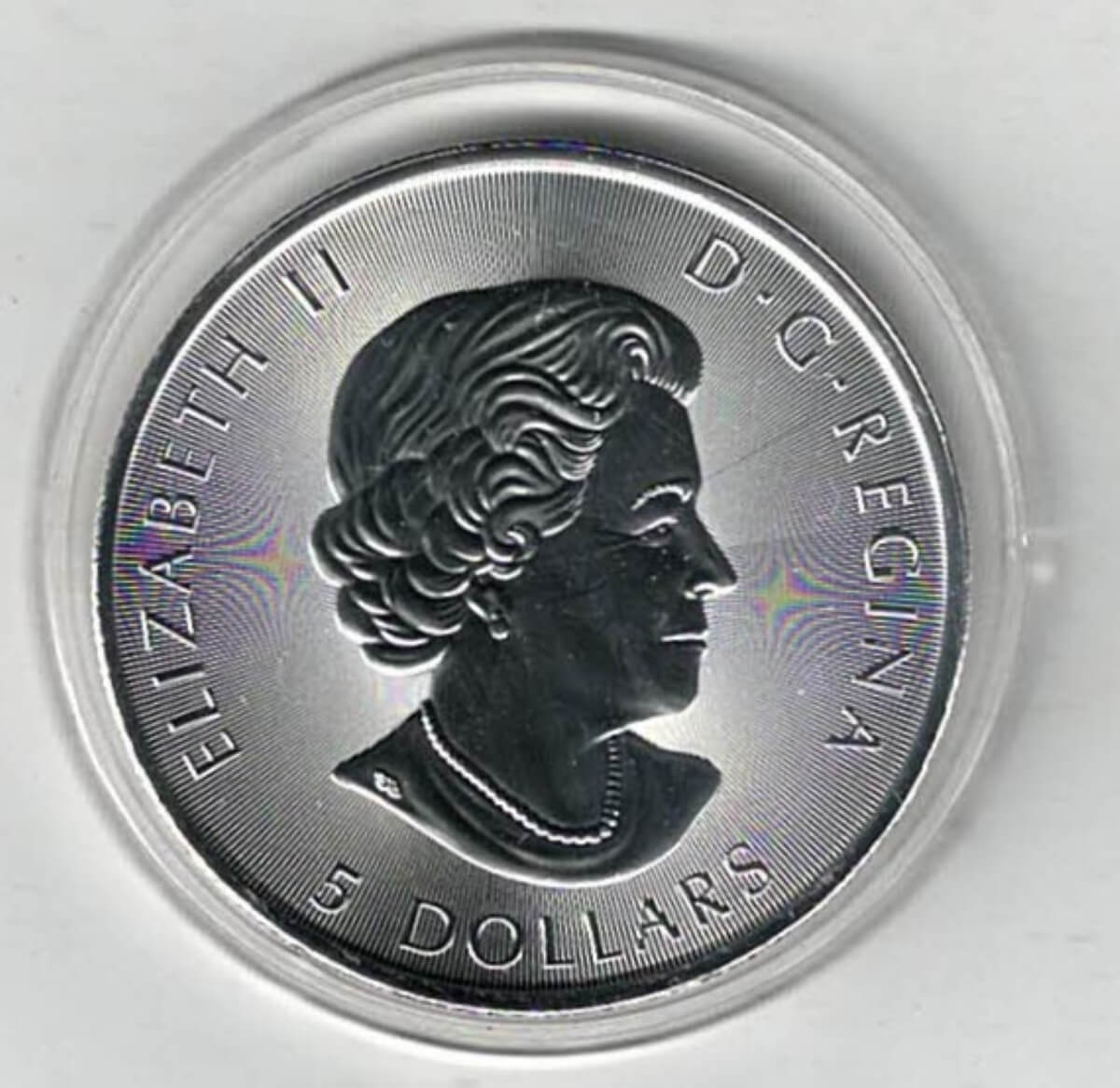This coin has an intrinsic value of Five Canadian Dollars.