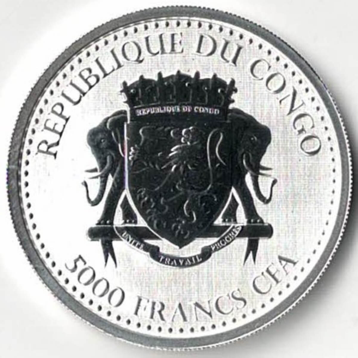 The Reverse features a Silverback Gorilla. The obverse features the Coat of Arms of the Democratic Republic of Congo.