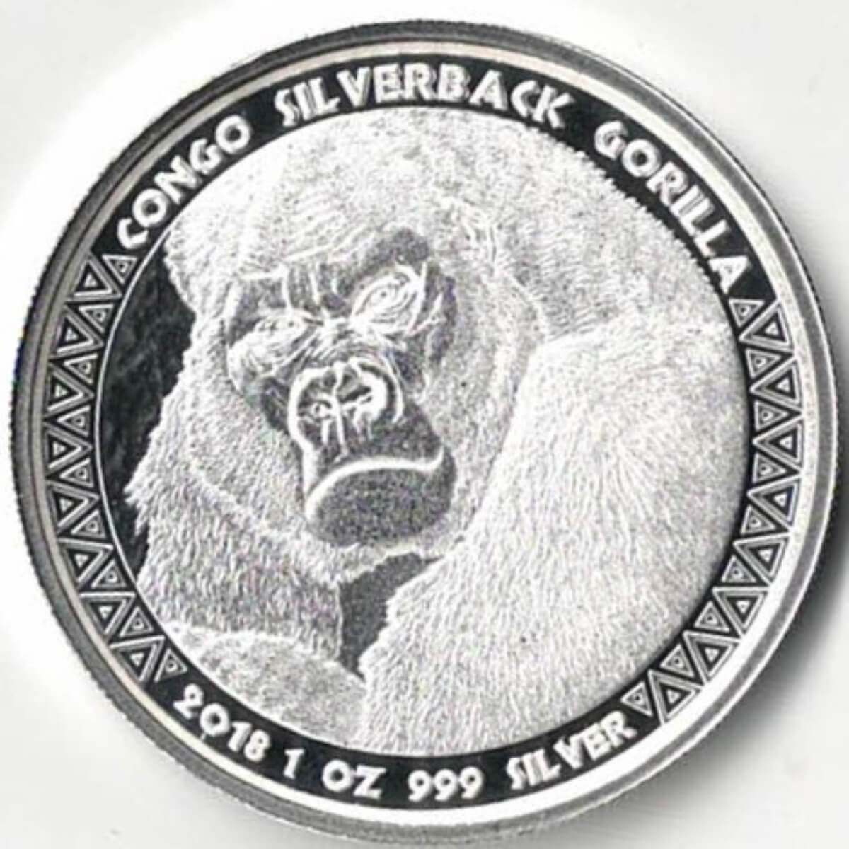 2018 Silver Congo One Ounce Silverback Gorilla 5000 Franc Coin In Near Mint Condition.