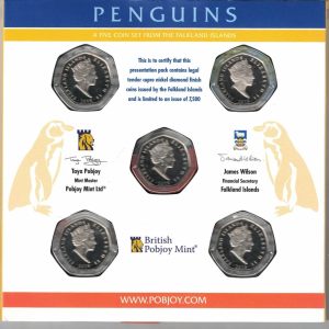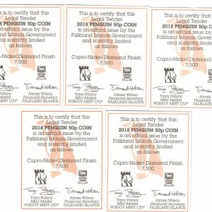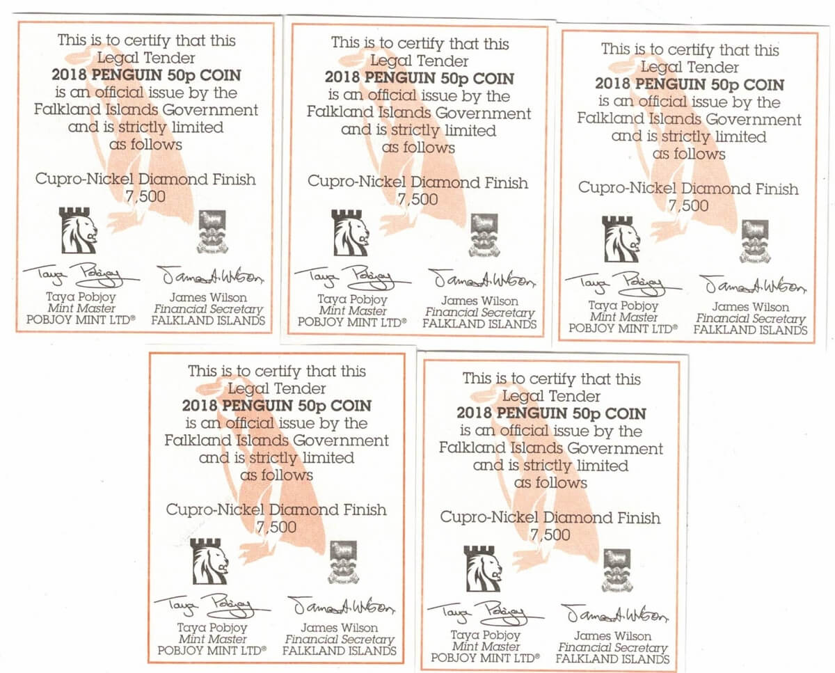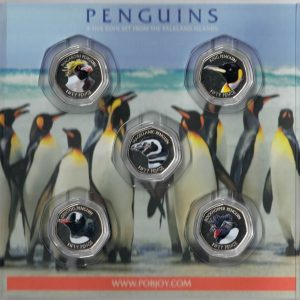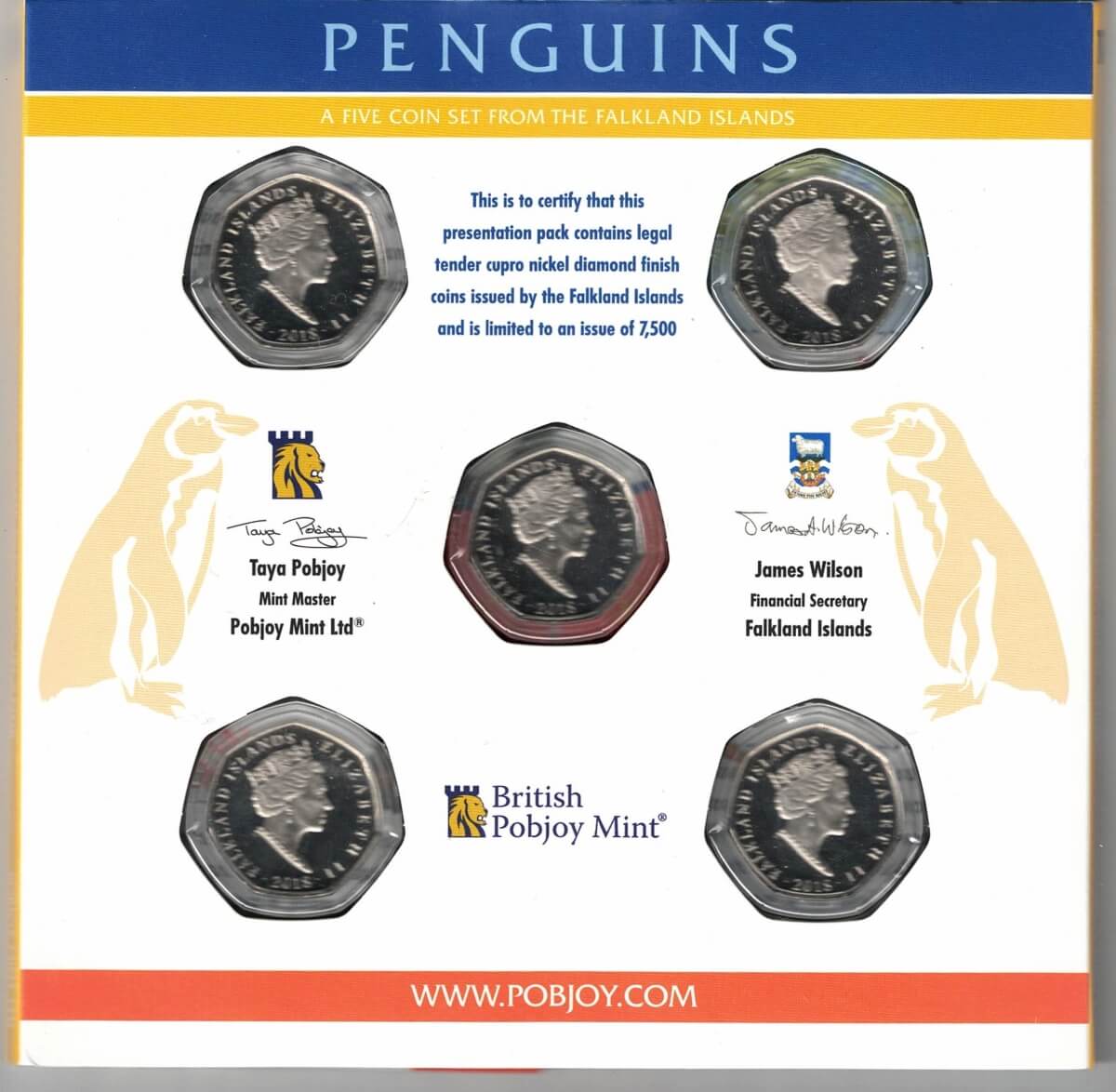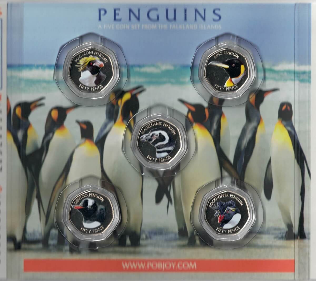 2018 Falkland Islands Penguins Fifty Pence Five Coin Set in Mint Condition.