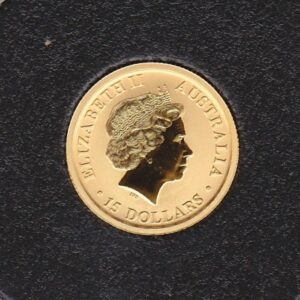 The tenth ounce Australia gold coin has an intrinsic value of 15 Australian Dollars.