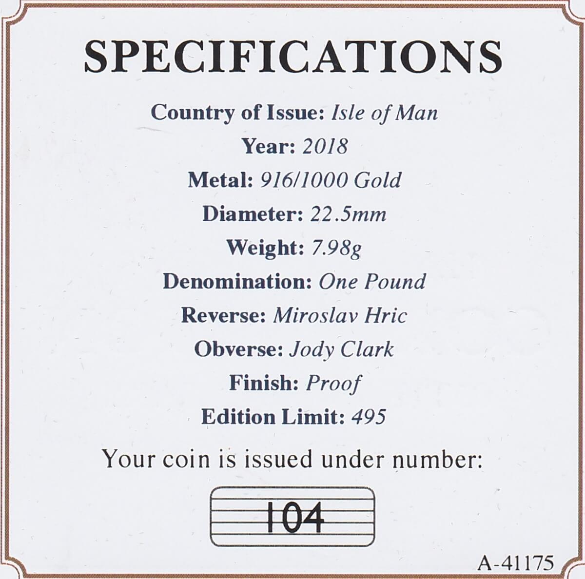 2018 Isle Of Man Gold Proof One Pound Coin.