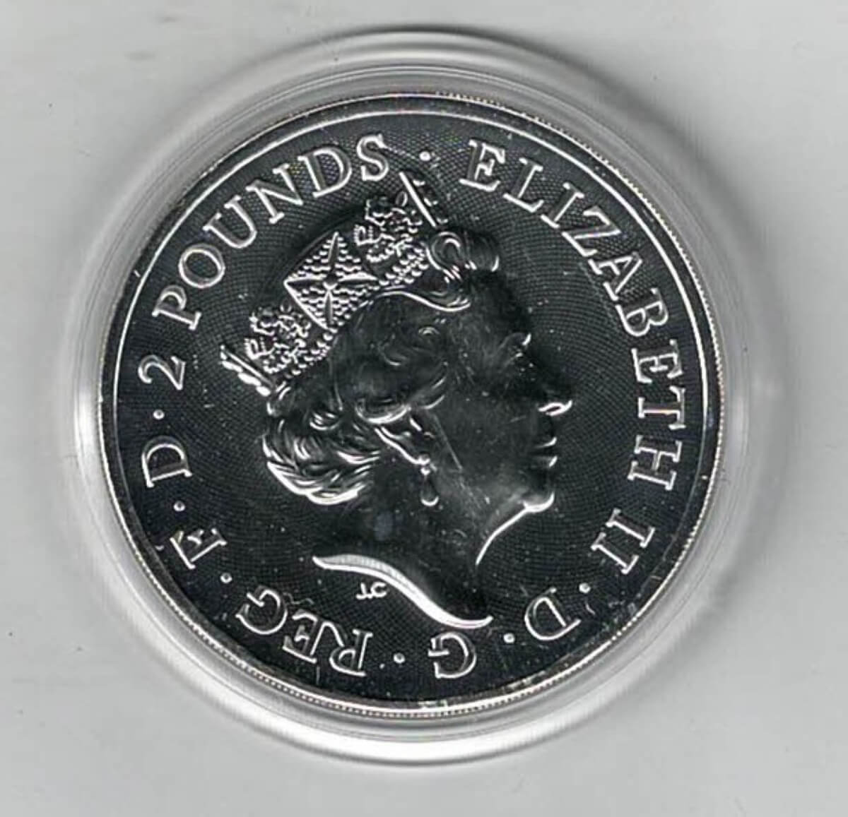 2018 Queen Elizabeth II One Ounce Silver Tower Bridge £2 Coin In Near Mint Condition.