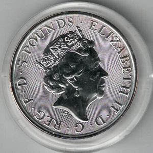 This coin was issued as part of the Queen’s Beasts series by the Royal Mint.
