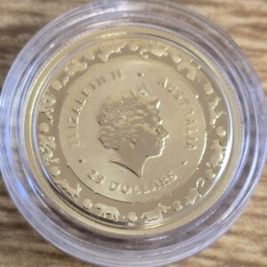 This Australia Gold quarter ounce coin was struck in 24 carat gold and weighs approx. 7.777 grams. The equivalent of quarter of an ounce of 99.99 fine gold.