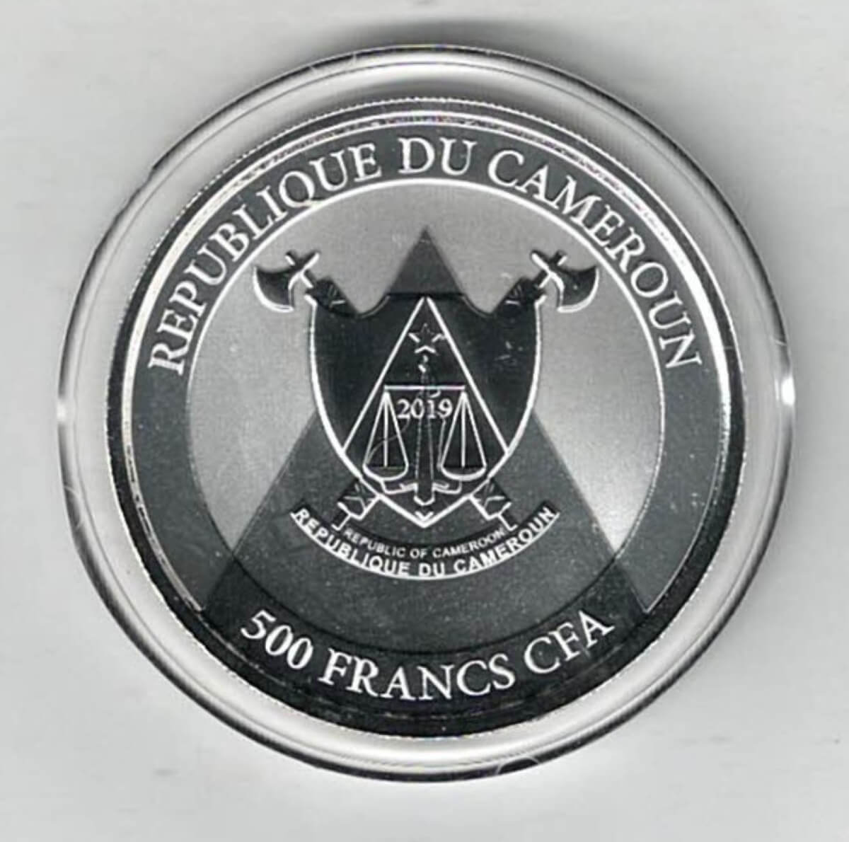 2019 Cameroon Silver One Ounce Cheetah 500 francs Coin in Near Mint Condition.