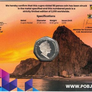 The pictures is a stock image, you will receive a similar Gibraltar island games fifty pence coin.