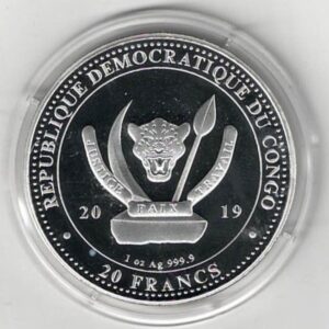2019 Silver Congo One Ounce ‘The Giraffe’ 20 Franc Coin In Near Mint Condition.