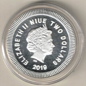 2019 Silver Niue One Ounce Athena Owl $2 Coin in near mint condition.