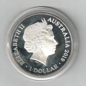 This coin has an intrinsic value of One Australian Dollar and contains one ounce of 999 fine silver.