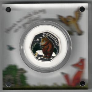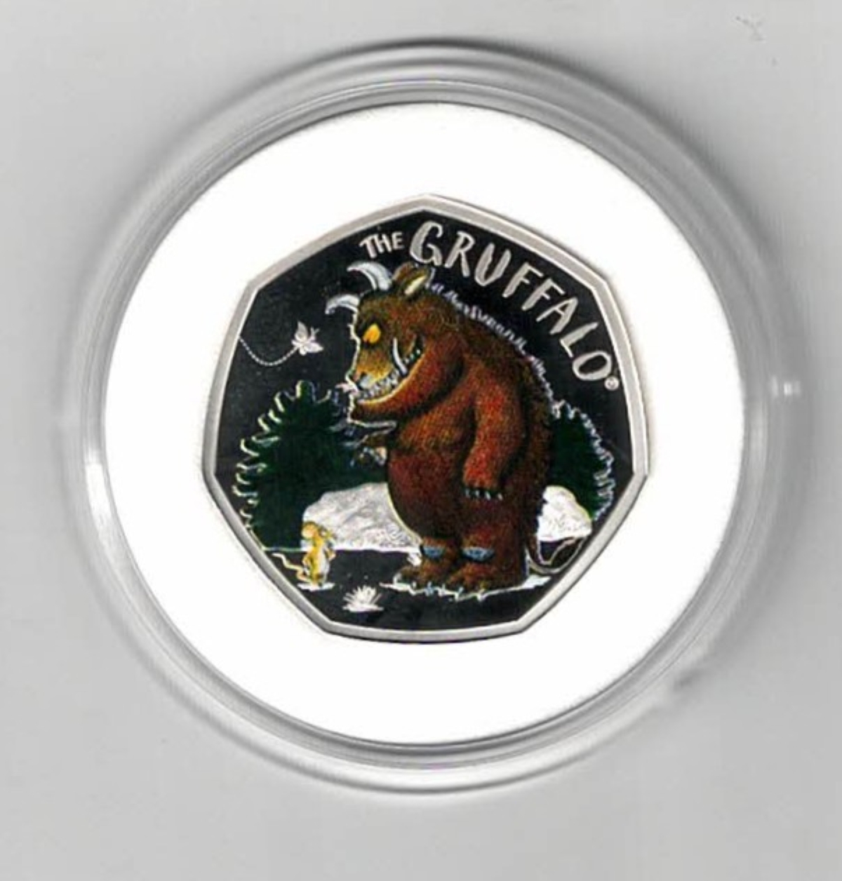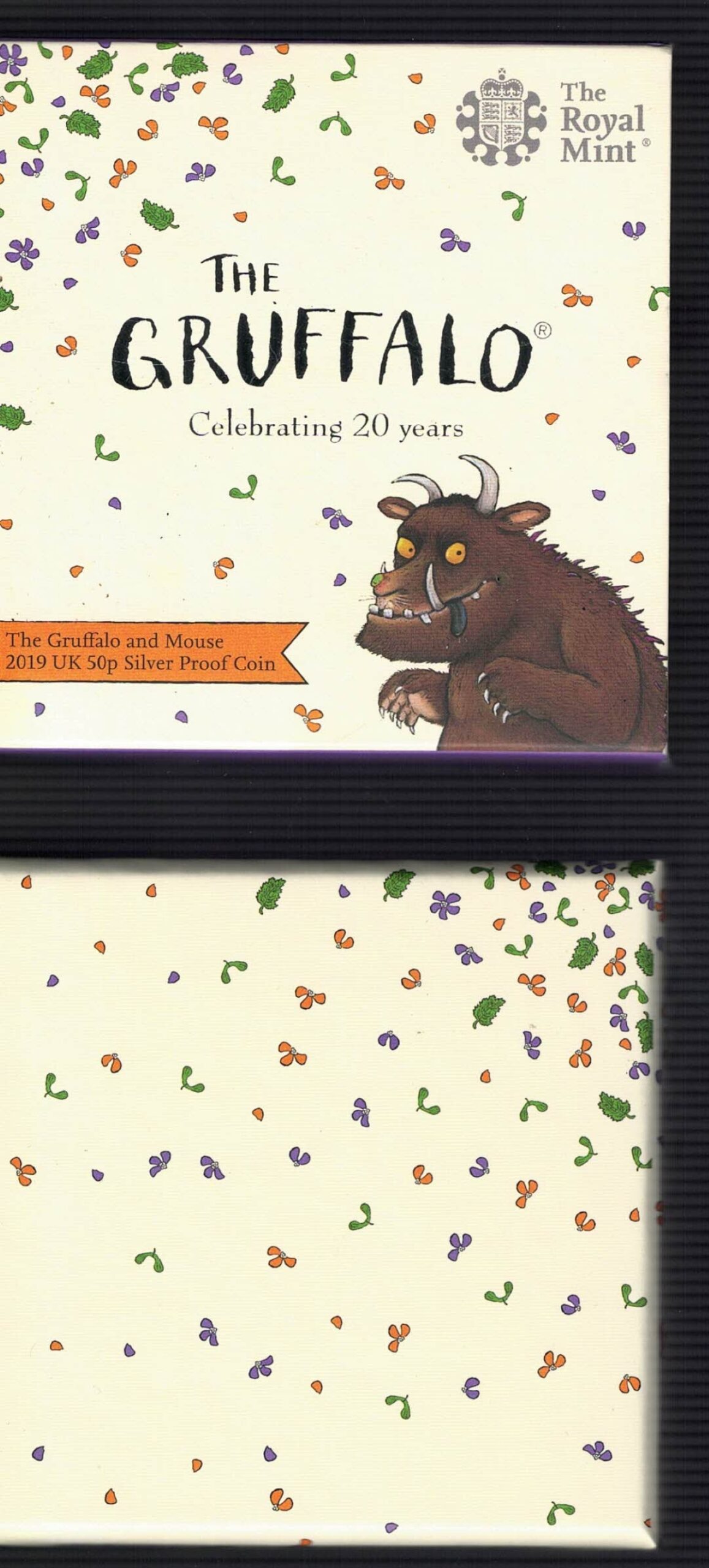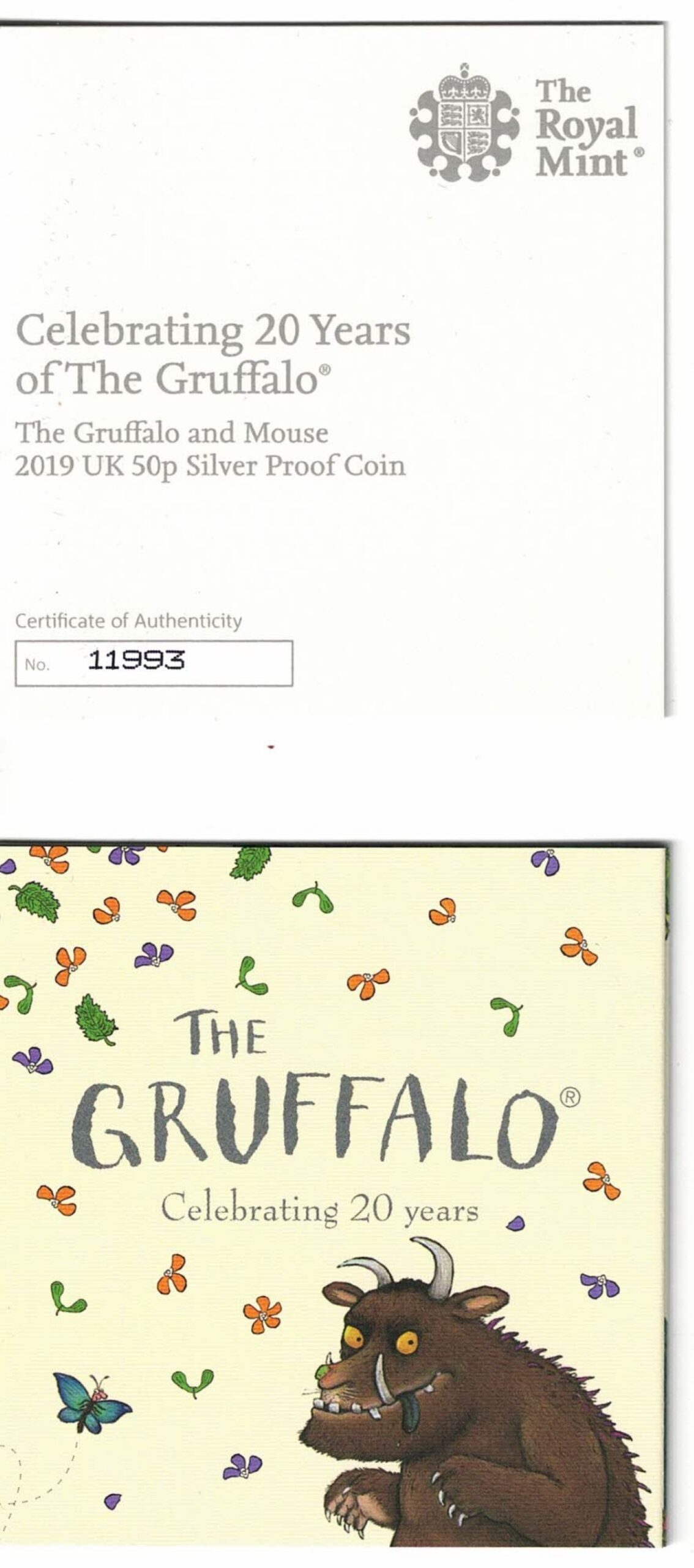 2019 Silver Proof Fifty Pence Coin The Gruffalo and Mouse. This coin comes in the original box with certificate as issued by the royal mint.2019 Silver Proof Fifty Pence Coin The Gruffalo and Mouse
