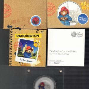 This 2019 coin is struck in .925 silver with a proof finish by the Royal Mint. The obverse features the portrait of Elizabeth II facing to the right. The reverse features Paddington at the Tower. Proof coins are hand-finished to create a flawless effect, and are often struck multiple times with specially prepared dies to achieve a mirrored finish and clarity of detail.
