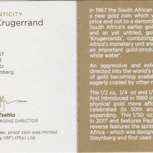 2019 South Africa Gold Proof Fiftieth Ounce Krugerrand Coin.