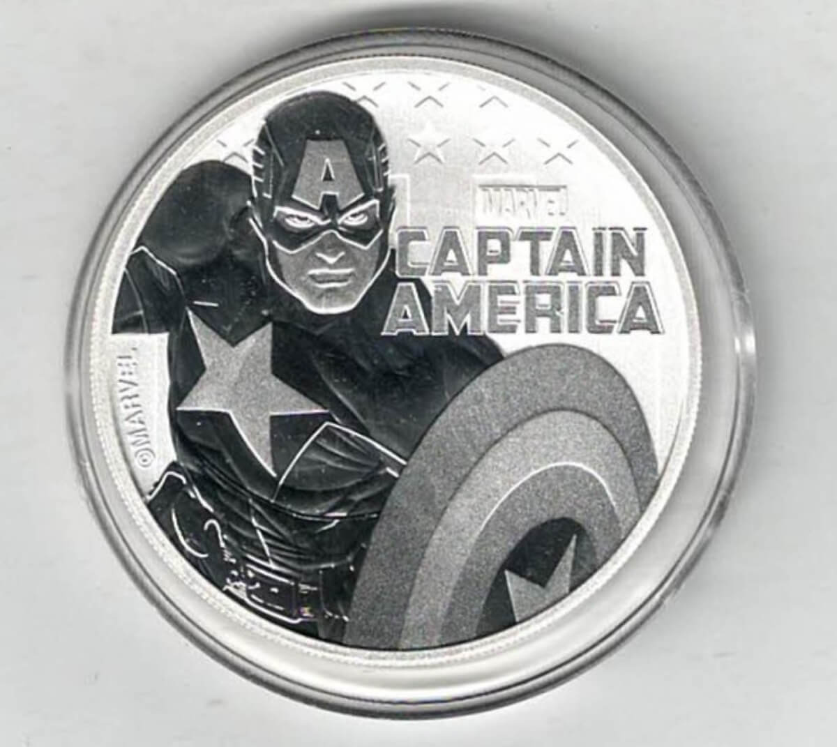 2019 Tuvalu Silver One Ounce Marvel Captain America In Near Mint Condition.
