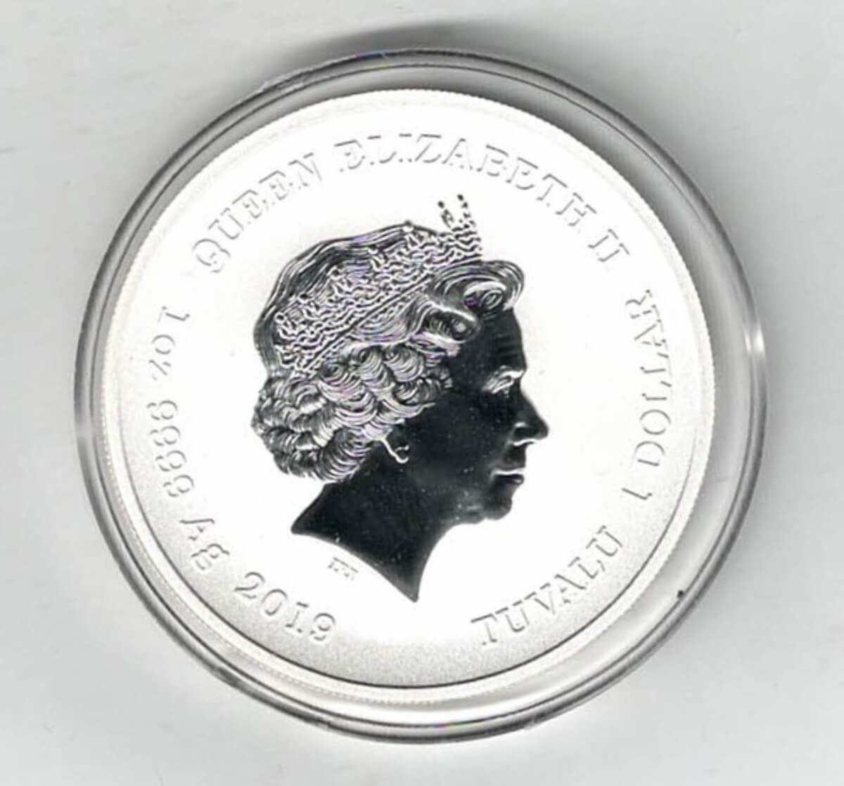 The coin contains one ounce of 9999 fine silver.
