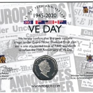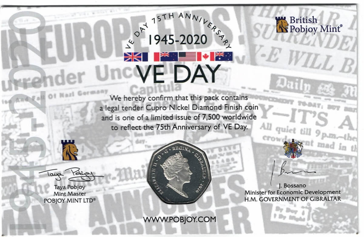 2020 Gibraltar VE DAY Fifty Pence Coin in Mint Condition.