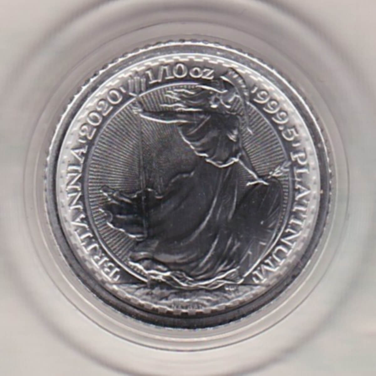 2020 Platinum Tenth Ounce Britannia coin featuring Queen Elizabeth II on the Obverse. The image of Britannia on the Reverse.2020 Platinum Tenth Ounce Britannia