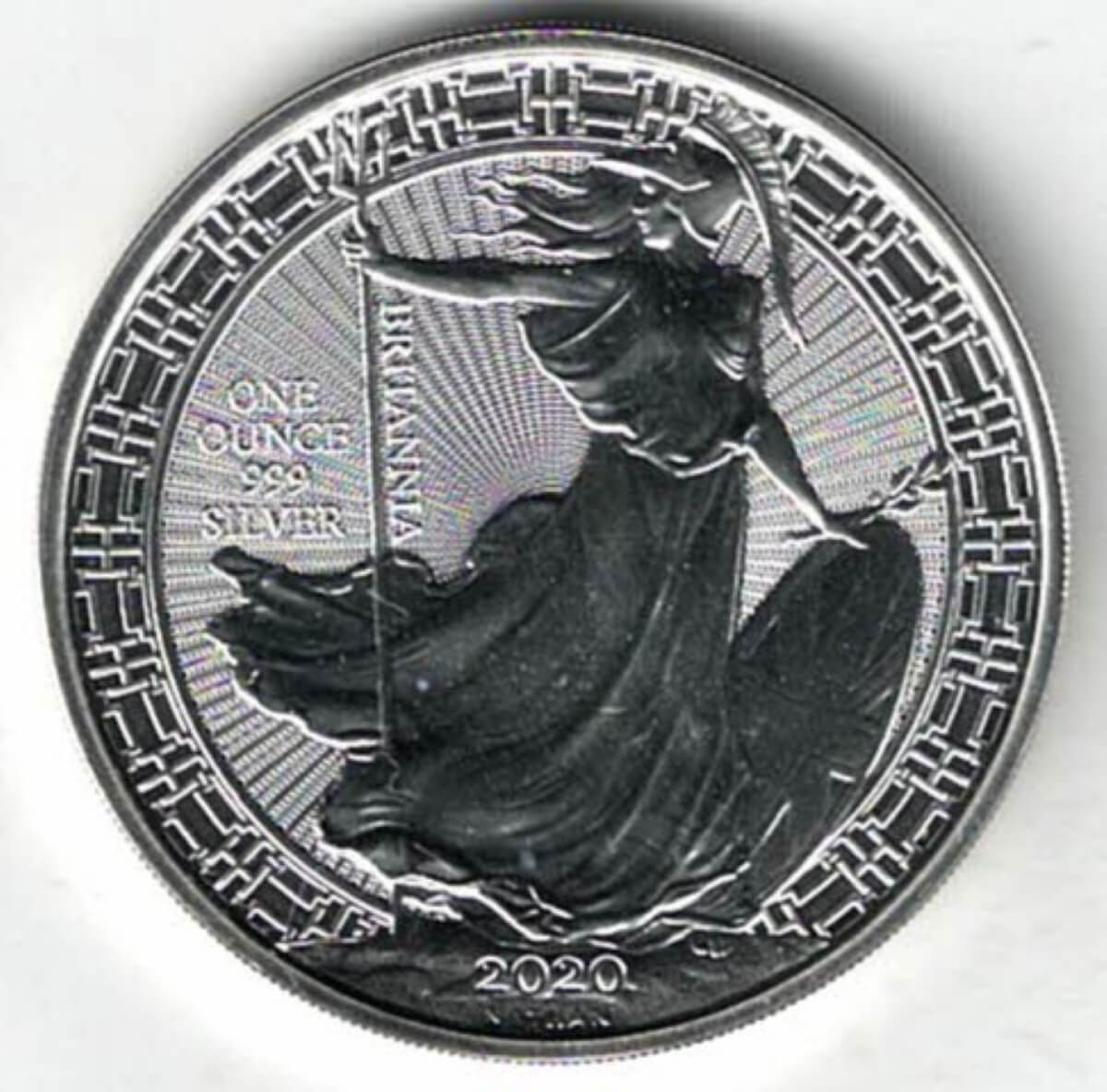 2020 One Ounce Silver Britannia £2 coin Oriental Border in Near Mint Condition.