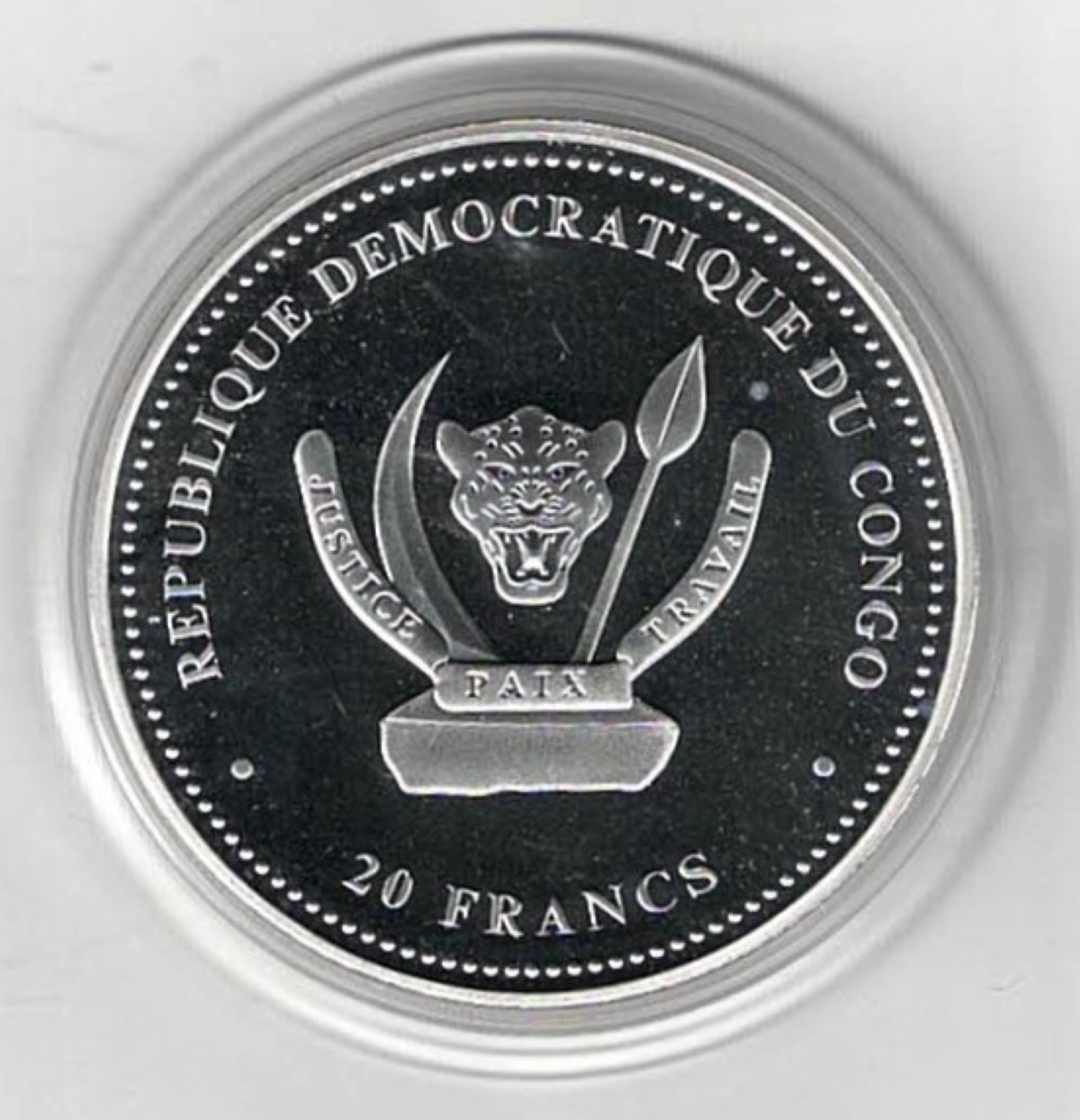 The Reverse features a Scorpion. The obverse features the Coat of Arms of the Democratic Republic of Congo.