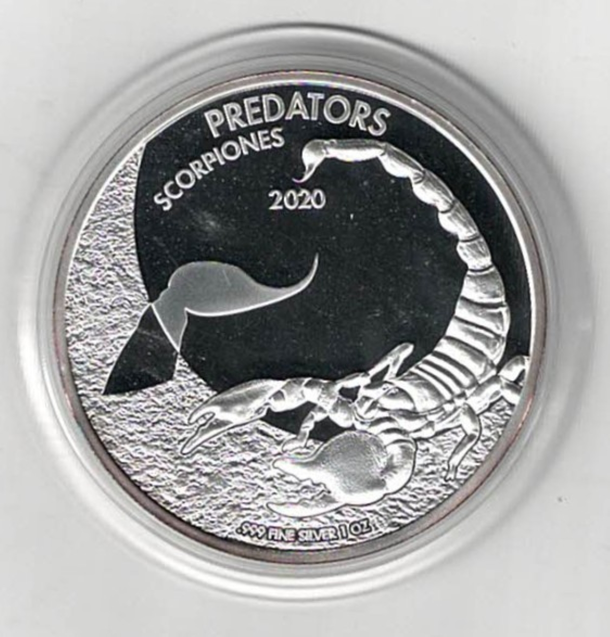 2020 Silver Congo One Ounce ‘The Scorpion’ 20 Franc Coin In Near Mint Condition.