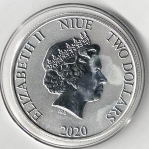 This 2020 coin was struck in .999 fine silver. The obverse features Elizabeth II facing Right. The reverse features Boba Fett with a rifle in hand.