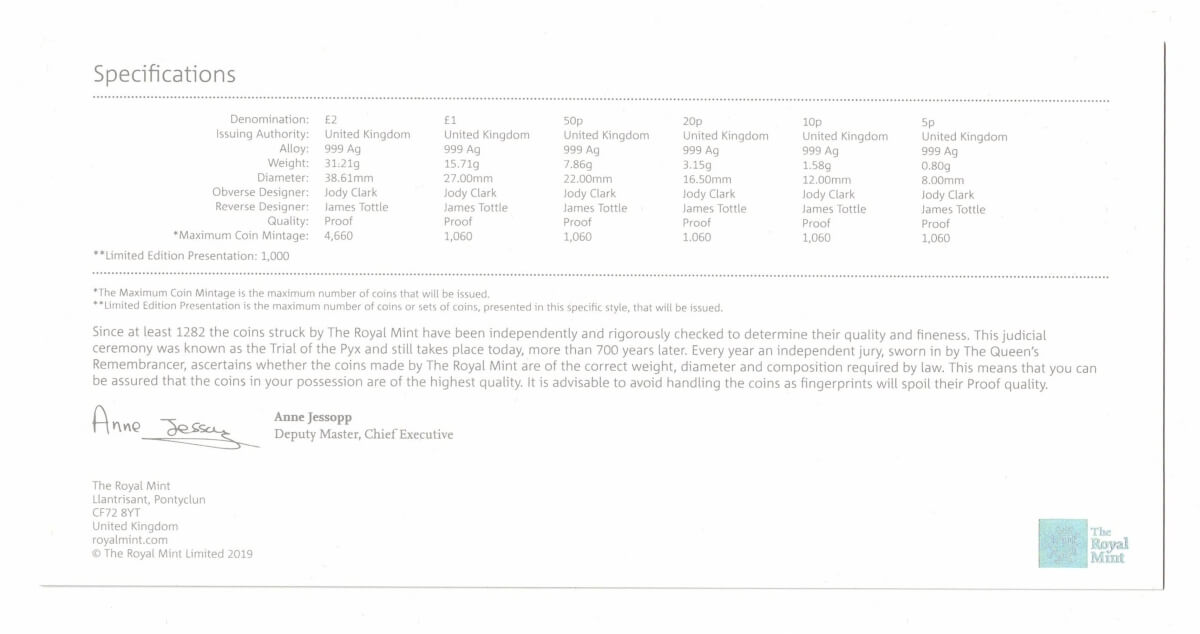 The six coins have been struck in 999 Silver and have a combined weigh of approx. 60.31 grams.