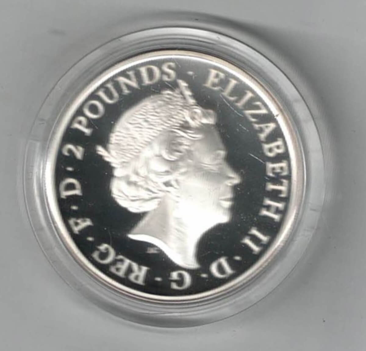 2020 One Ounce Silver Proof £2 Coin The White Lion of Mortimer In Mint Condition.