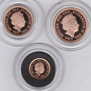 2020 Three Coin Gold Proof Set. This three coin gold sovereign set comes boxed with certificate as issued by the Royal Mint.2020 Three Coin Gold Proof Set