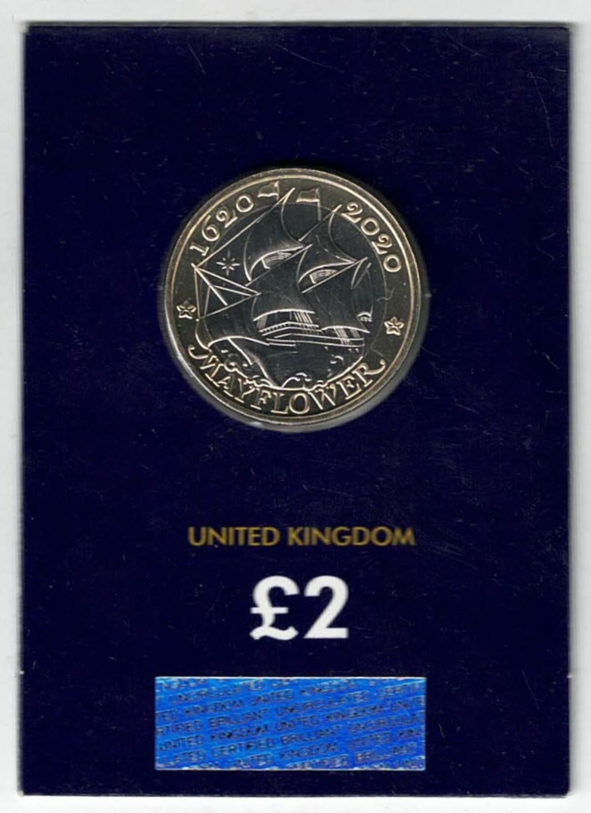 2020 400th Anniversary Of The Voyage Of The Mayflower Two Pound Coin In Mint Condition.
