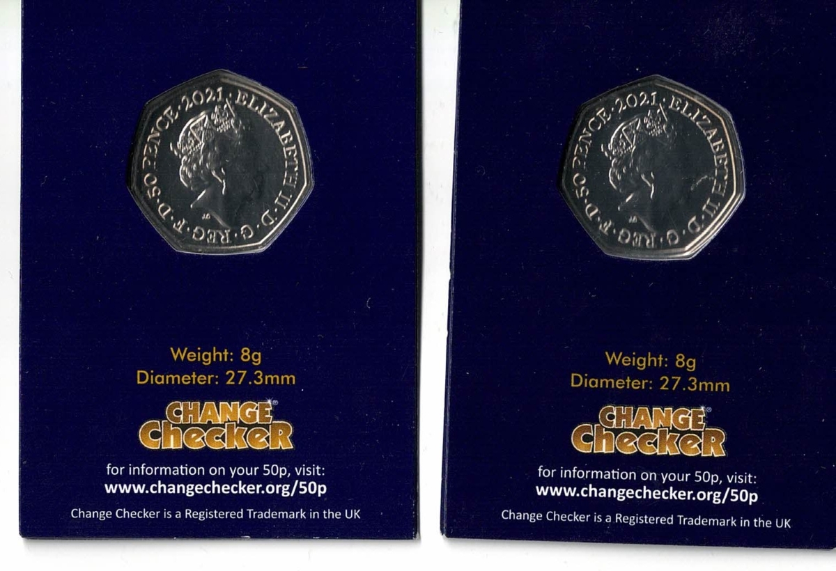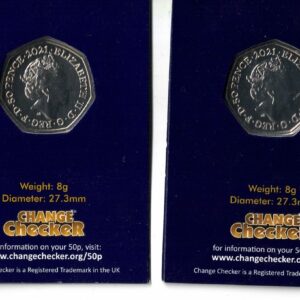 2 x 2021 Non Colourised Fifty Pence Team GB, Brilliant Uncirculated Coin In Near Mint Condition.