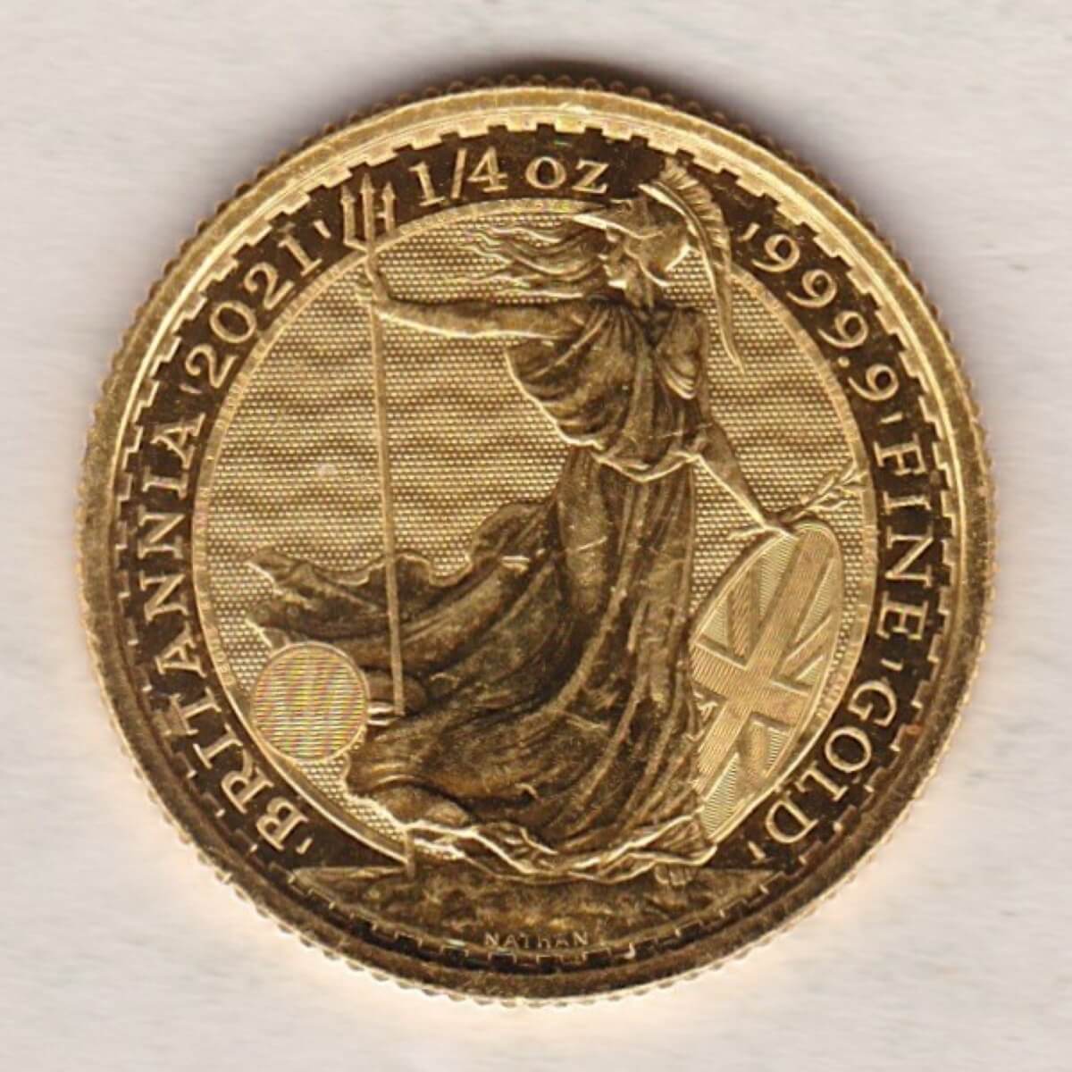 The pictures are of a stock item. You will receive a similar 2021 Gold Quarter Ounce Britannia coin.