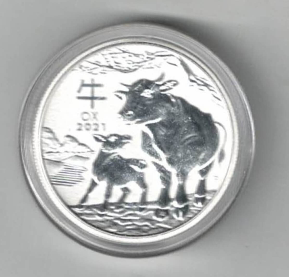 2021 Silver Australia Half Ounce Year Of The Ox Coin In Near Mint Condition.